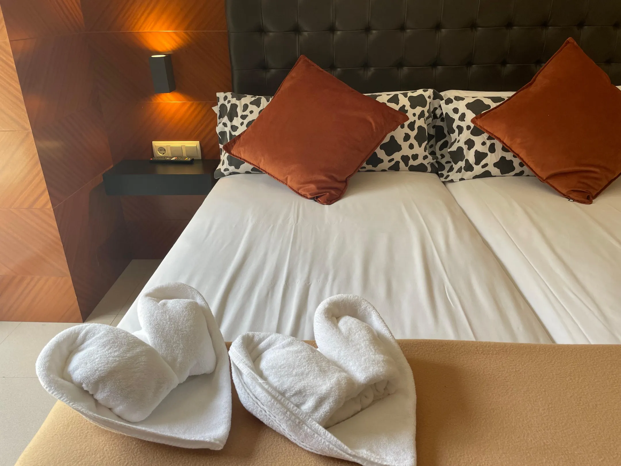 El hotel cuenta con habitaciones dobles, triples, cuádruples y Suites. El desayuno es de tipo bufet y la cena es un menú servido en mesa.