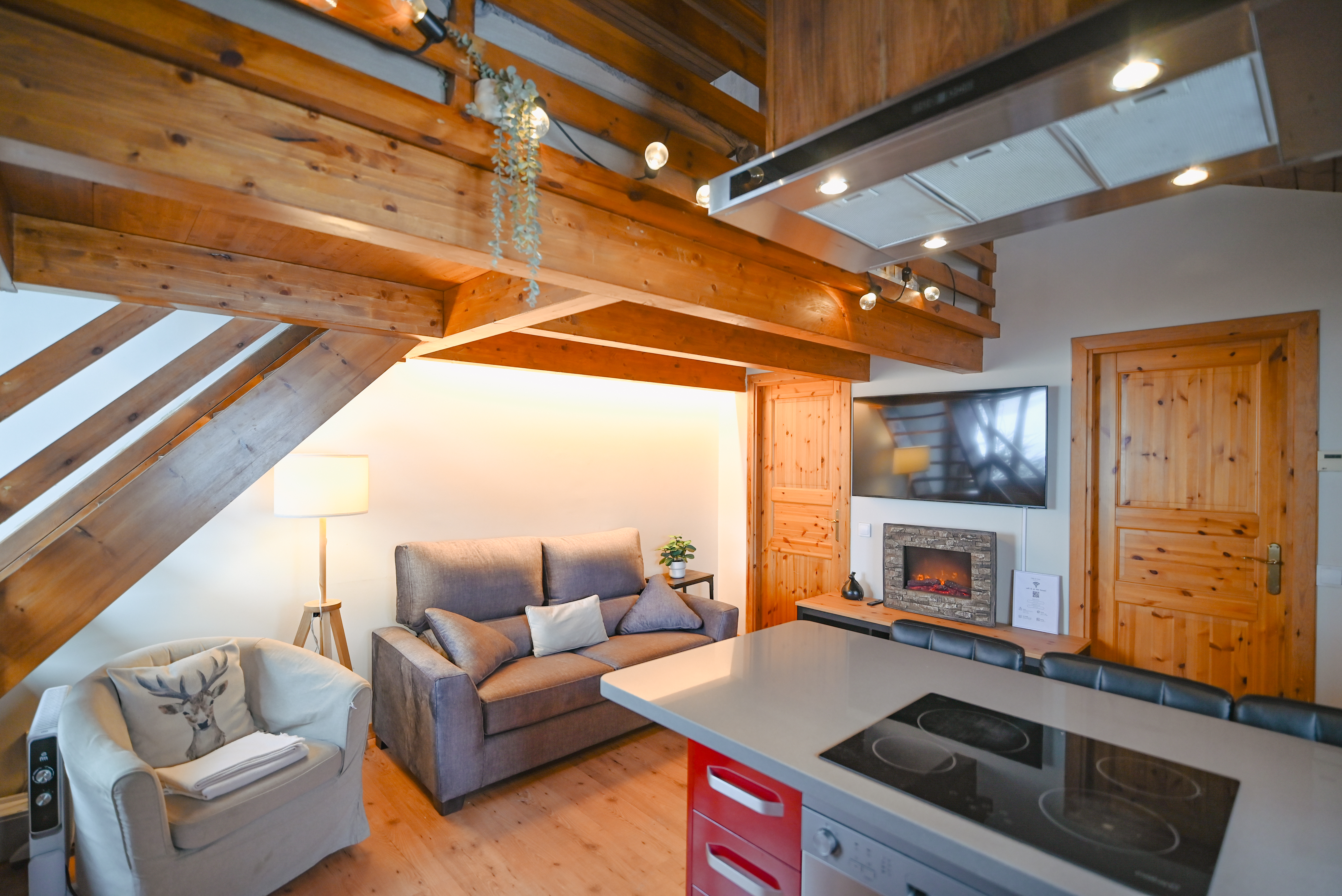 Cabaña de 2 habitaciones y 1 baño, rodeado de naturaleza. Perfecto para desconectar, pero con todas las comodidades: chimenea eléctrica, Wi-Fi rápido y Smart TV.